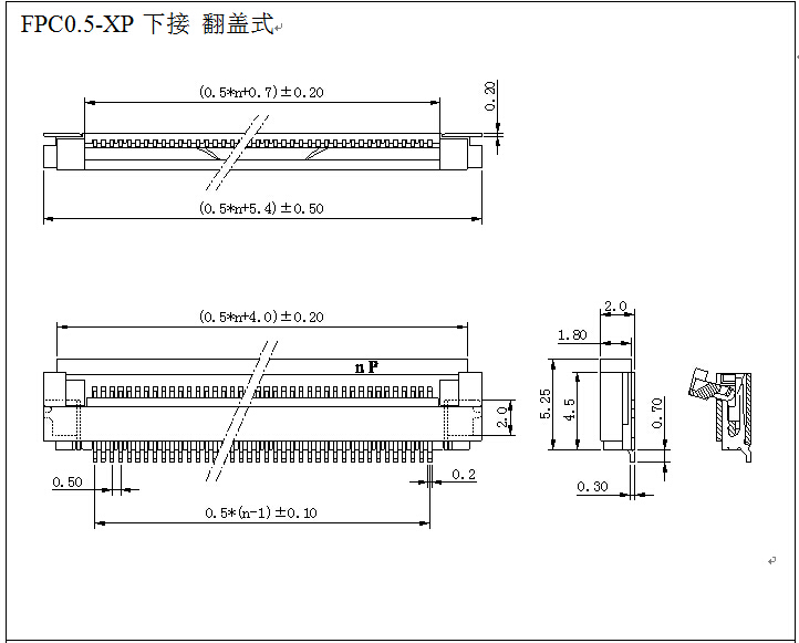 產(chǎn)品類型 FPC0.5-XP間距 0.5mm