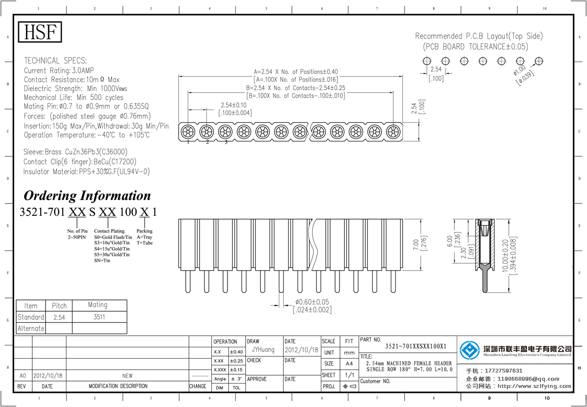 產(chǎn)品分類:圓孔排針排母連接器 產(chǎn)品型號(hào):2.54MM 單排 H=7.0 S/T 圓孔排母 批發(fā) 廠家 聯(lián)豐盈 技術(shù)參數(shù):額定電流:3.oamp接觸電阻:1om最大介電強(qiáng)度:MIN/1000vrms機(jī)械壽命:最少500次交配引腳