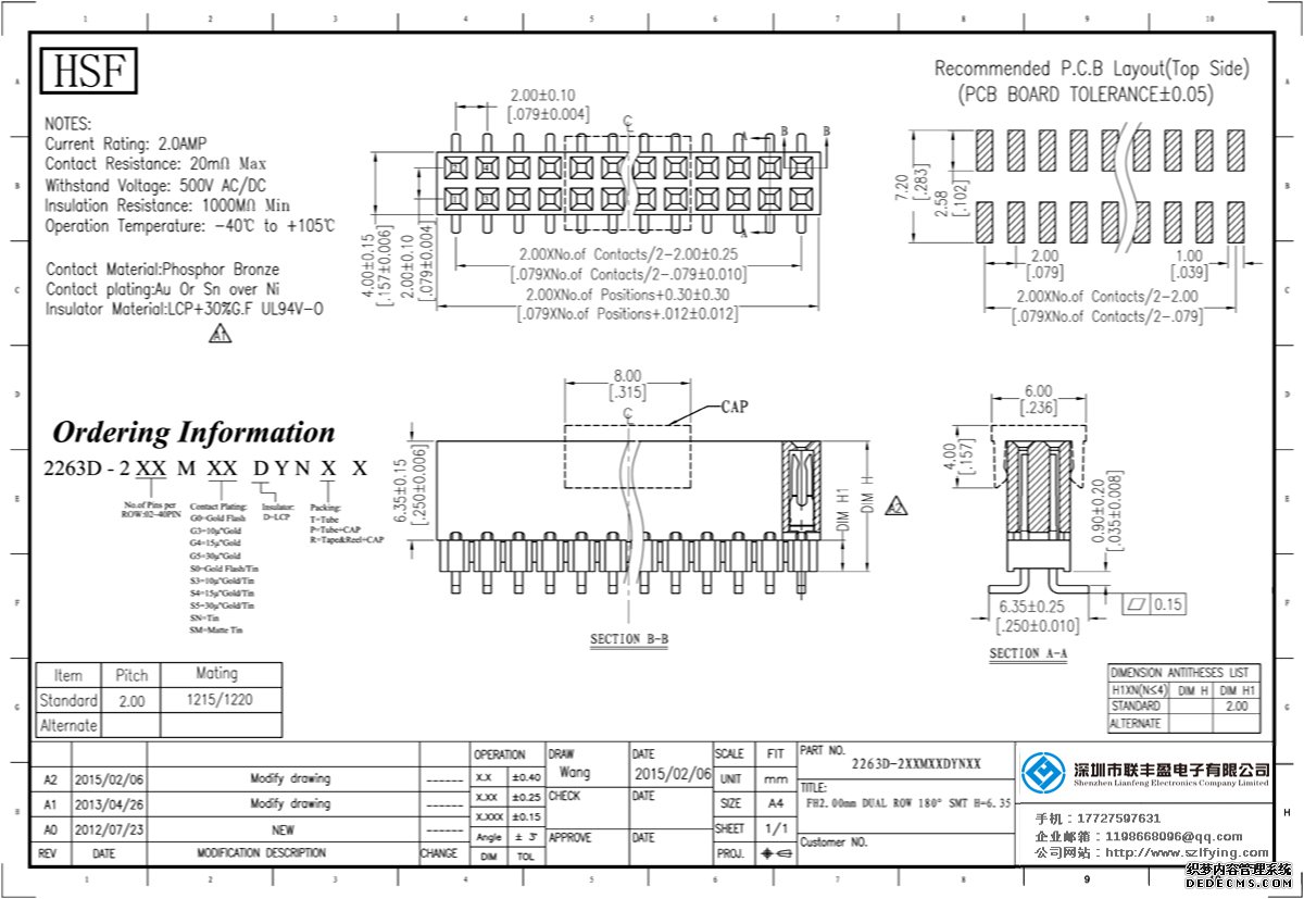 產(chǎn)品分類:排母連接器 產(chǎn)品規(guī)格:聯(lián)豐盈 2.0MM 雙排加塑膠 180SMT 排母 生產(chǎn) 產(chǎn)品介紹:額定電流:2.0amp電流電阻:20m最大絕緣電阻:1000m民承受電壓:AC 500V /分鐘工作溫度:55﹣℃+ 125℃