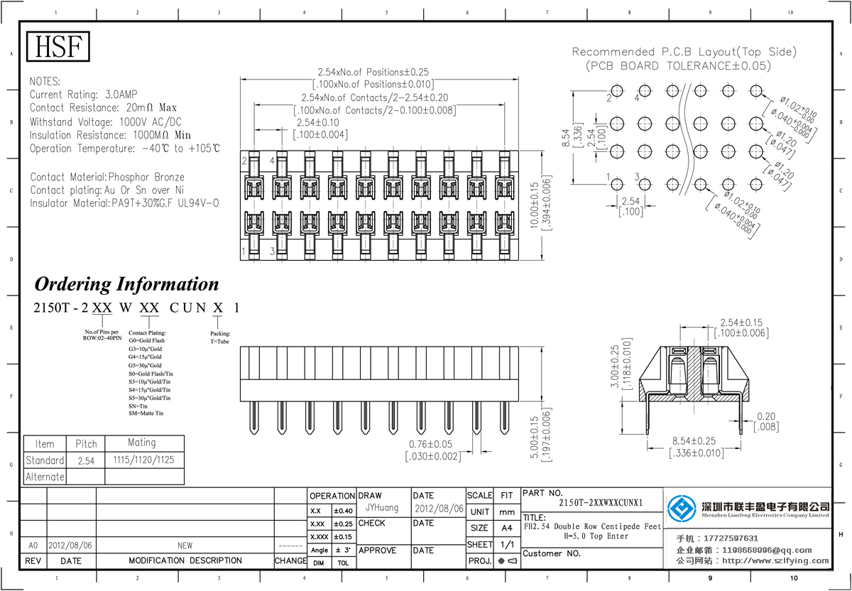 產(chǎn)品分類:排母連接器 產(chǎn)品規(guī)格:聯(lián)豐盈 2.54MM 上插式 雙排 蜈蚣腳 排母 產(chǎn)品介紹:額定電流:3.0amp電流電阻:20m最大絕緣電阻:1000mmin耐壓:1000V AC /分鐘工作溫度:40﹣℃+ 105℃接觸