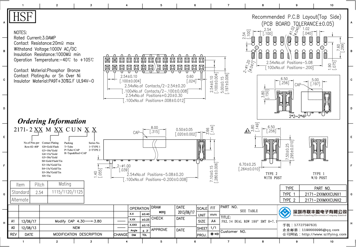 產(chǎn)品分類:排母連接器 產(chǎn)品規(guī)格:2.54MM 雙排 180 SMT 排母 批發(fā) 產(chǎn)品介紹:額定電流:3.0amp電流電阻:20m最大絕緣電阻:1000mmin耐壓:1000V AC /分鐘工作溫度:40﹣℃+ 105℃接觸材料:磷青