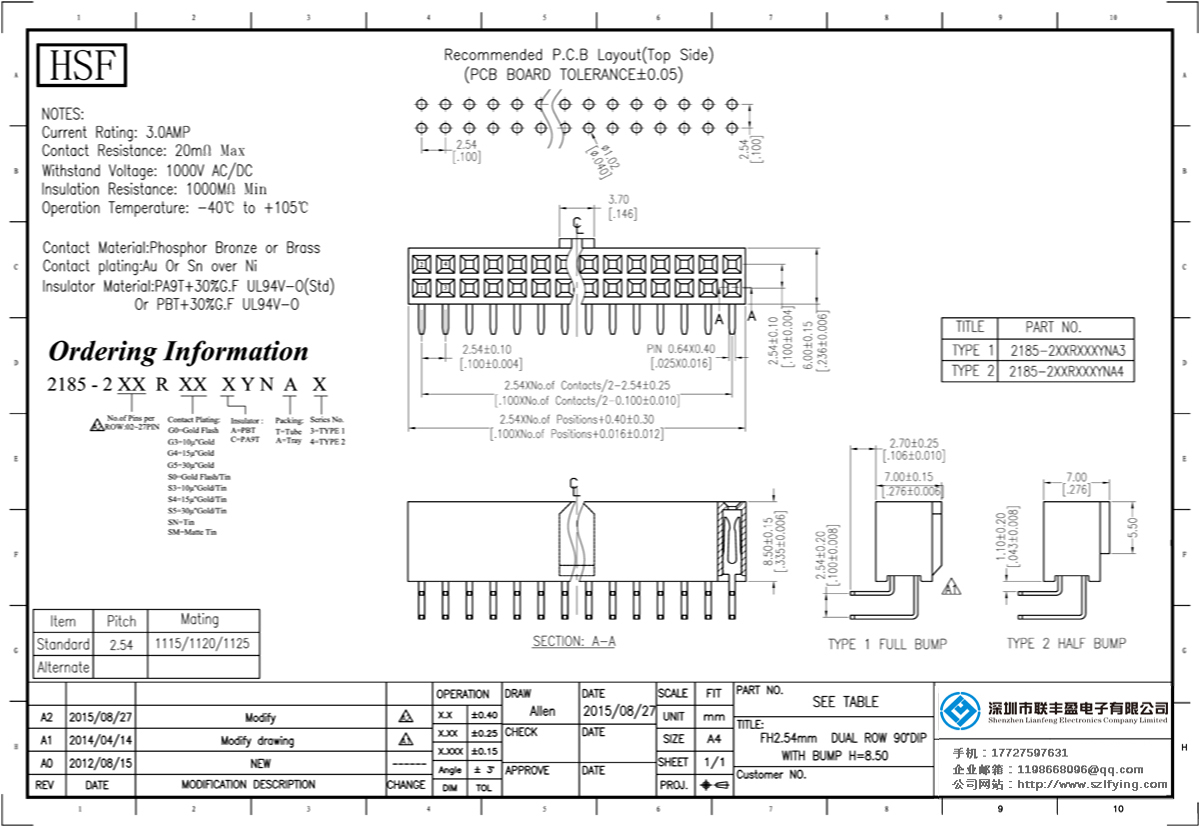 產(chǎn)品分類:排母連接器 產(chǎn)品規(guī)格:2.54MM H=8.5MM 帶凸點 雙排 90彎插型 排母 產(chǎn)品介紹:額定電流:3.0amp電流電阻:20m最大絕緣電阻:1000mmin耐壓:1000V AC /分鐘工作溫度:40﹣℃+ 105℃接觸