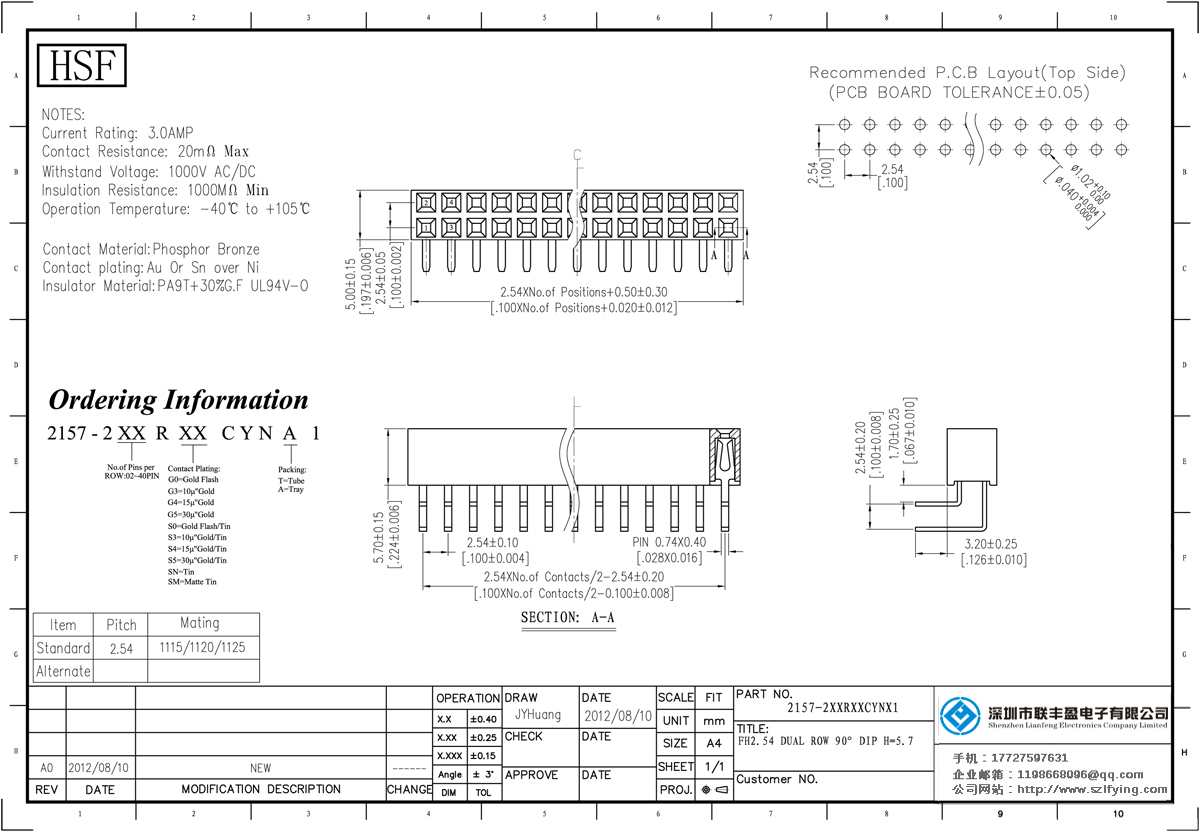 產(chǎn)品分類:排母連接器 產(chǎn)品規(guī)格:2.54mm H = 5.7mm雙行 180母頭 產(chǎn)品介紹:2157 - 2xxrxxcynx1電流評級:3.0amp電流電阻:20m最大絕緣電阻值:1000m耐受電壓1000V AC /分鐘:分鐘操作溫度:﹣40℃