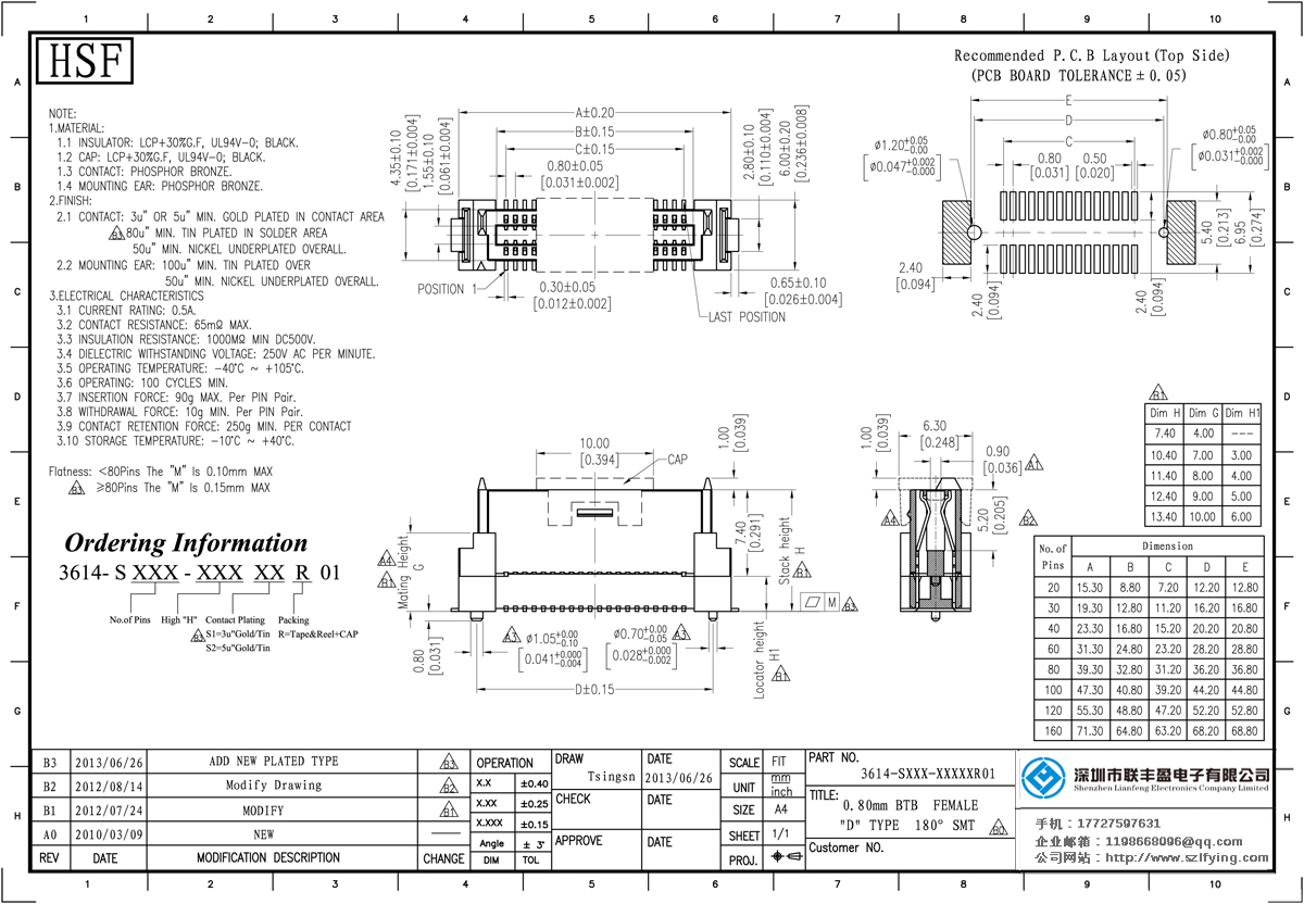 產(chǎn)品分類:Board To Board 連接器 產(chǎn)品型號:0.8間距 母座 單槽結(jié)構(gòu)D型 Board To Board 連接器 技術(shù)參數(shù):額定電流:0.5amp電流電阻:65m最大絕緣電阻:1000m承受電壓:交流250V /分鐘工作溫度: